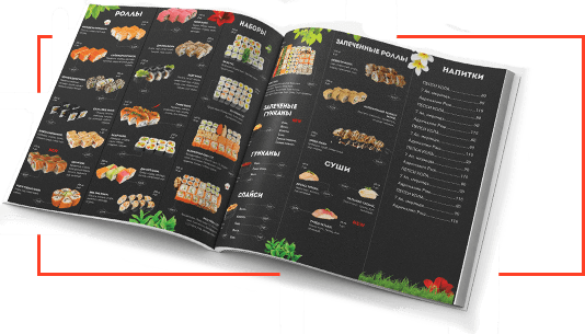 Вводим в меню как популярные роллы (с икрой летучей рыбы, с сыром «Филадельфия»), так и блюда на любителя — острые, вегетарианские, сладкие, запеченные...